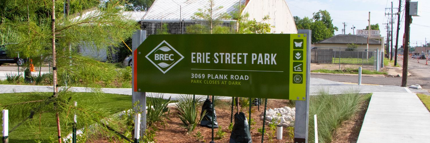 The park is a welcoming neighborhood green space located at the corner of Plank Road and Erie Street, repurposed from two former residential lots. This project is a collaborative effort between BREC, Build BR, Republic Services, LSU, and other partners, designed to serve as a catalyst for revitalization in the Plank Road Corridor.